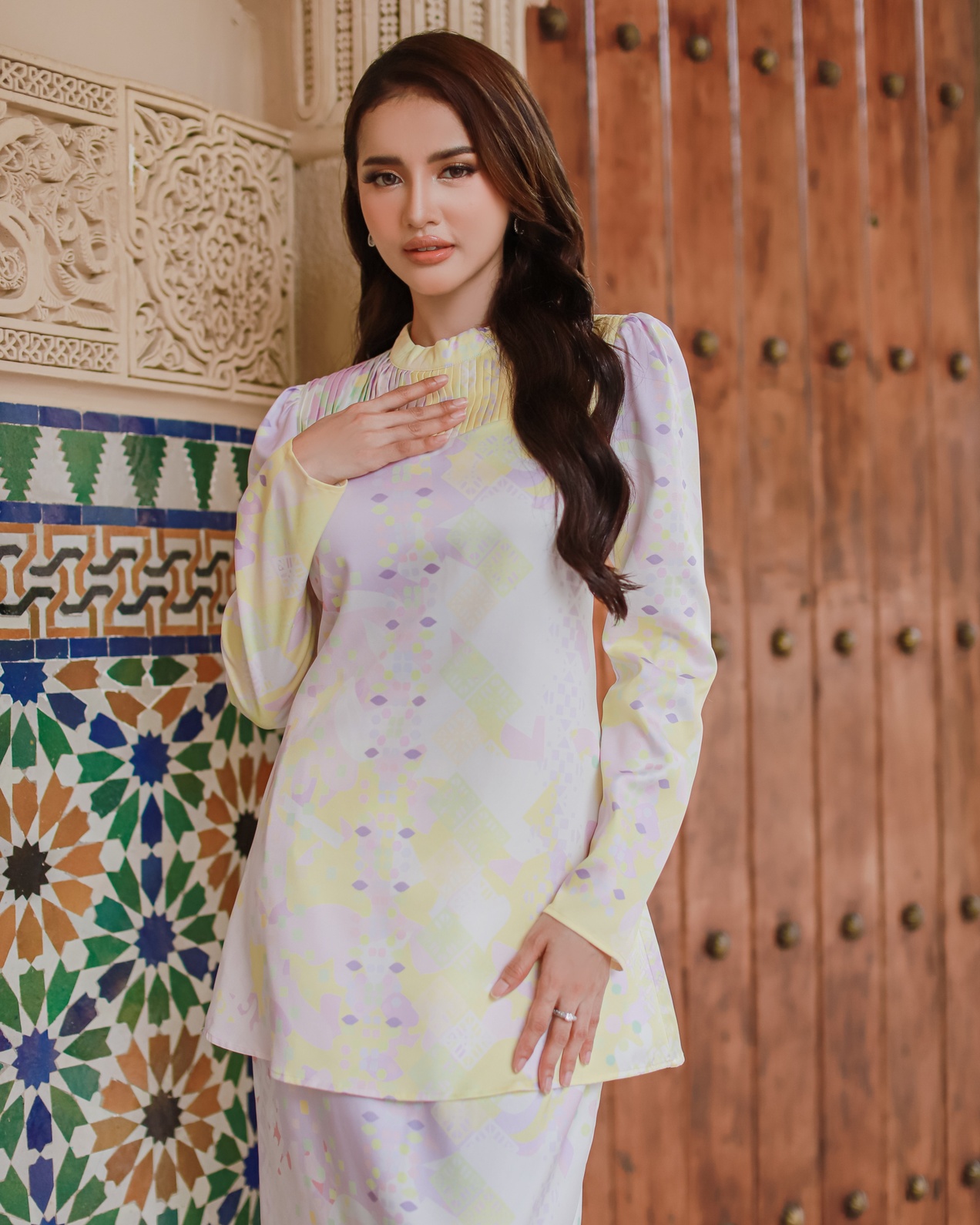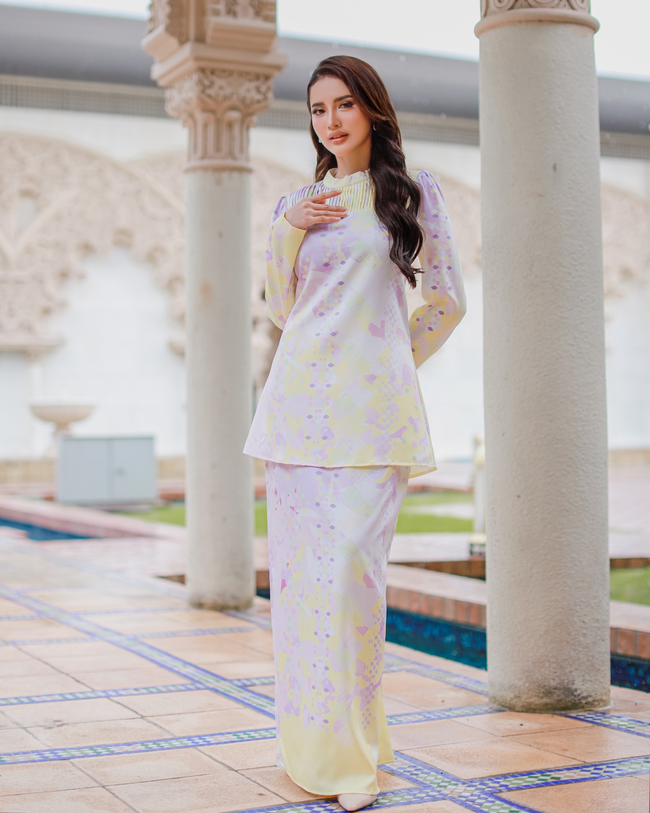 Model : 167 cm , 55kg. Bust 34 & Hip 36. Wearing Clarissa Kurung in size XS (Example)