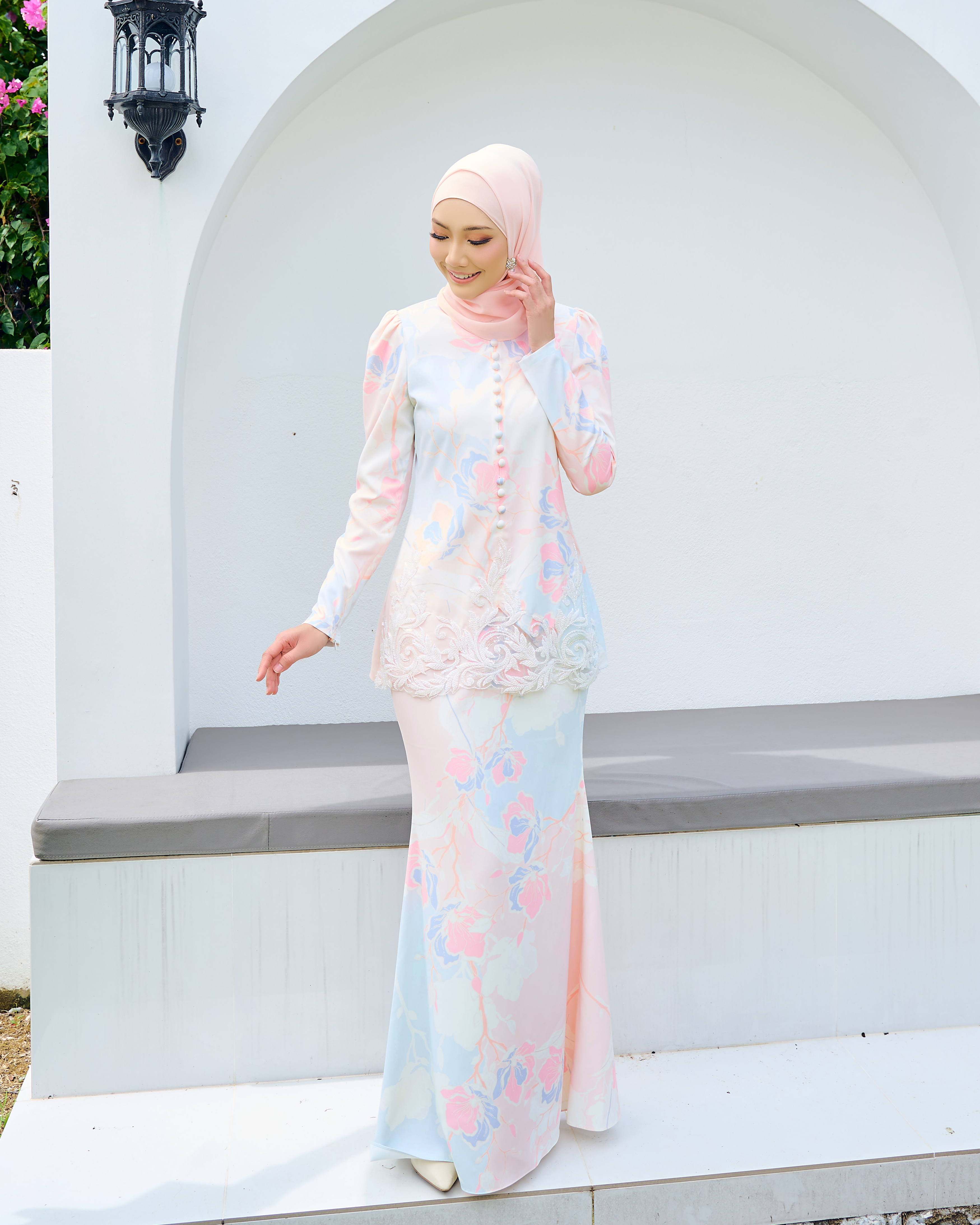 Model : 180cm , 55kg. Bust 34 & Hip 36. Wearing Leona Kurung in size XS (Example)
