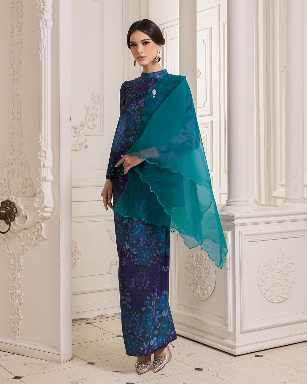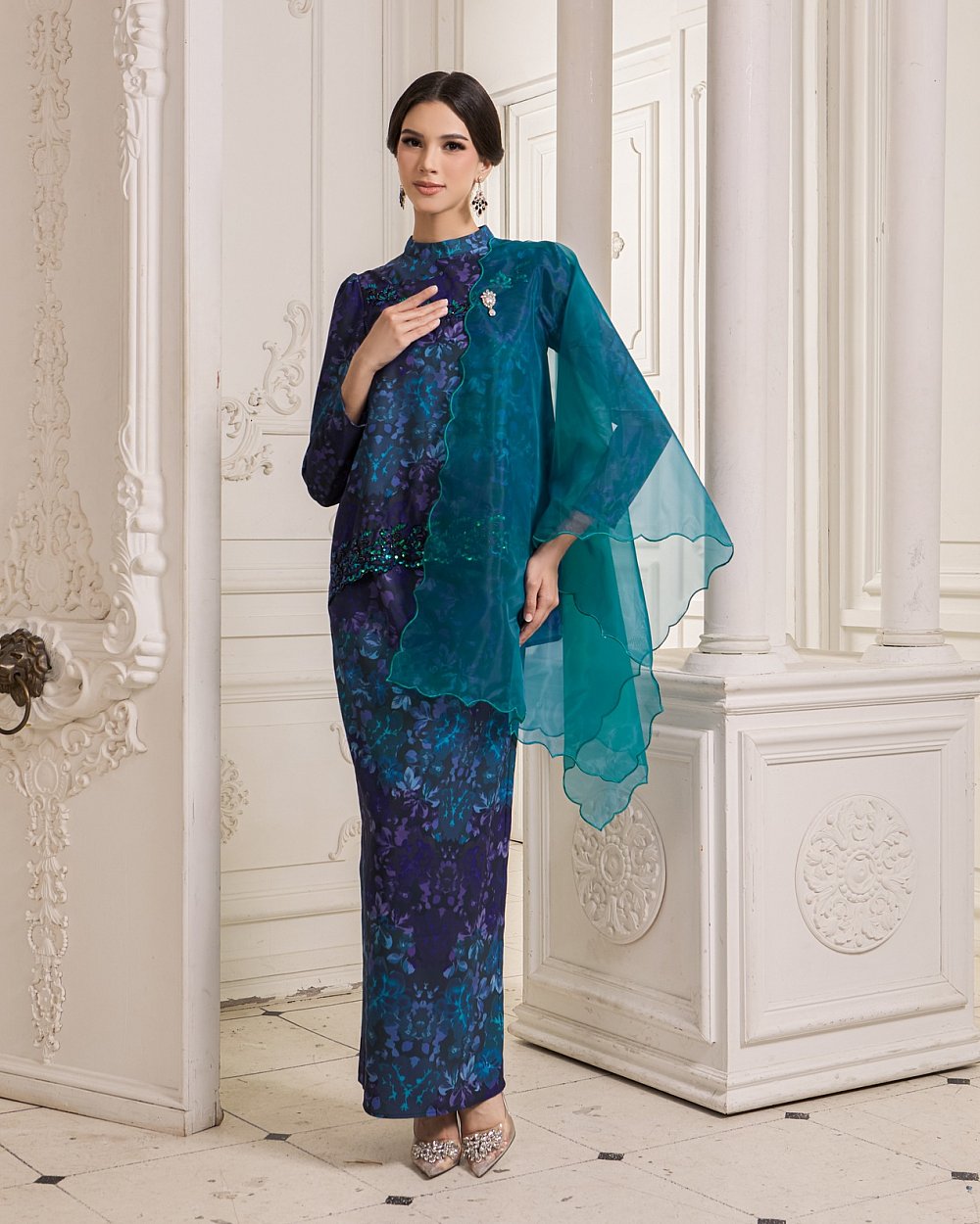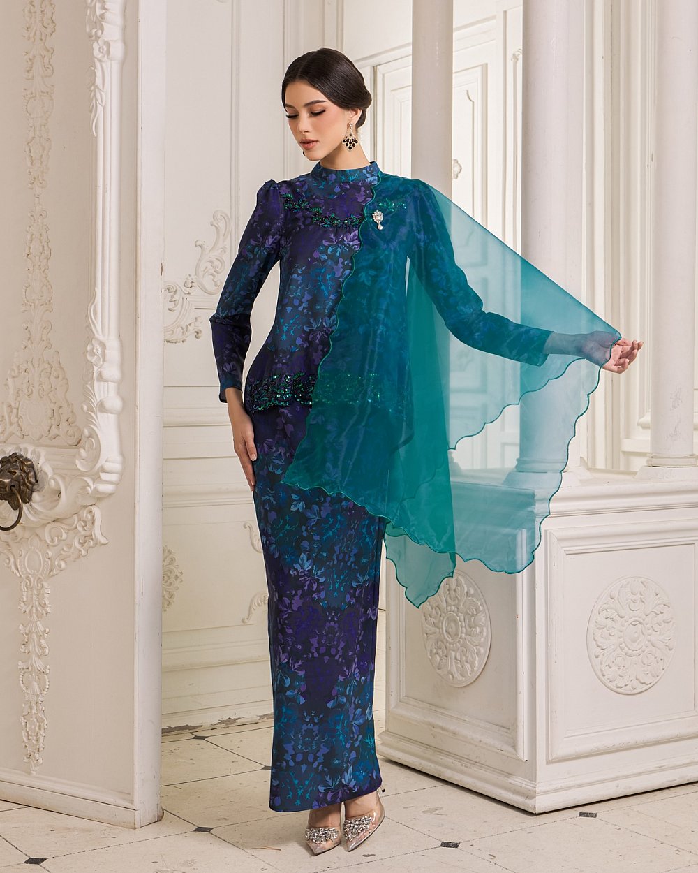 JEMEL'S SIGNATURE ORGANZA SHAWL - TEAL BLUE
