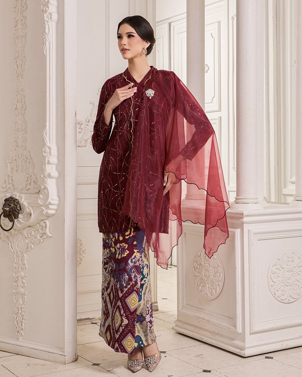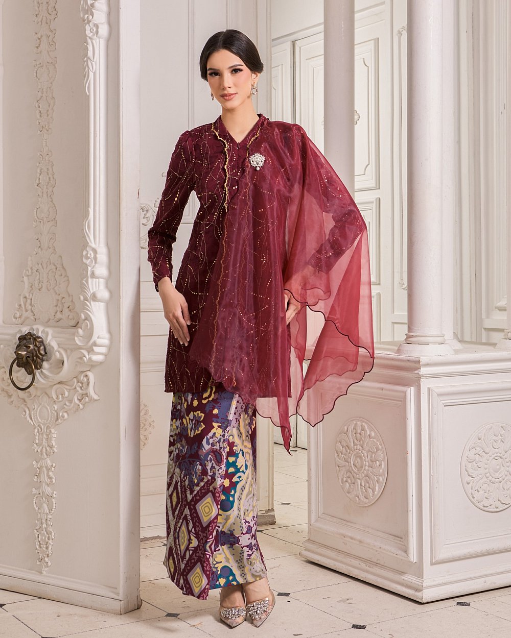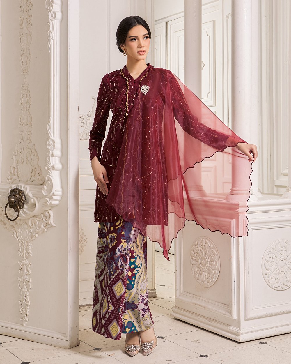 JEMEL'S SIGNATURE ORGANZA SHAWL - MAROON