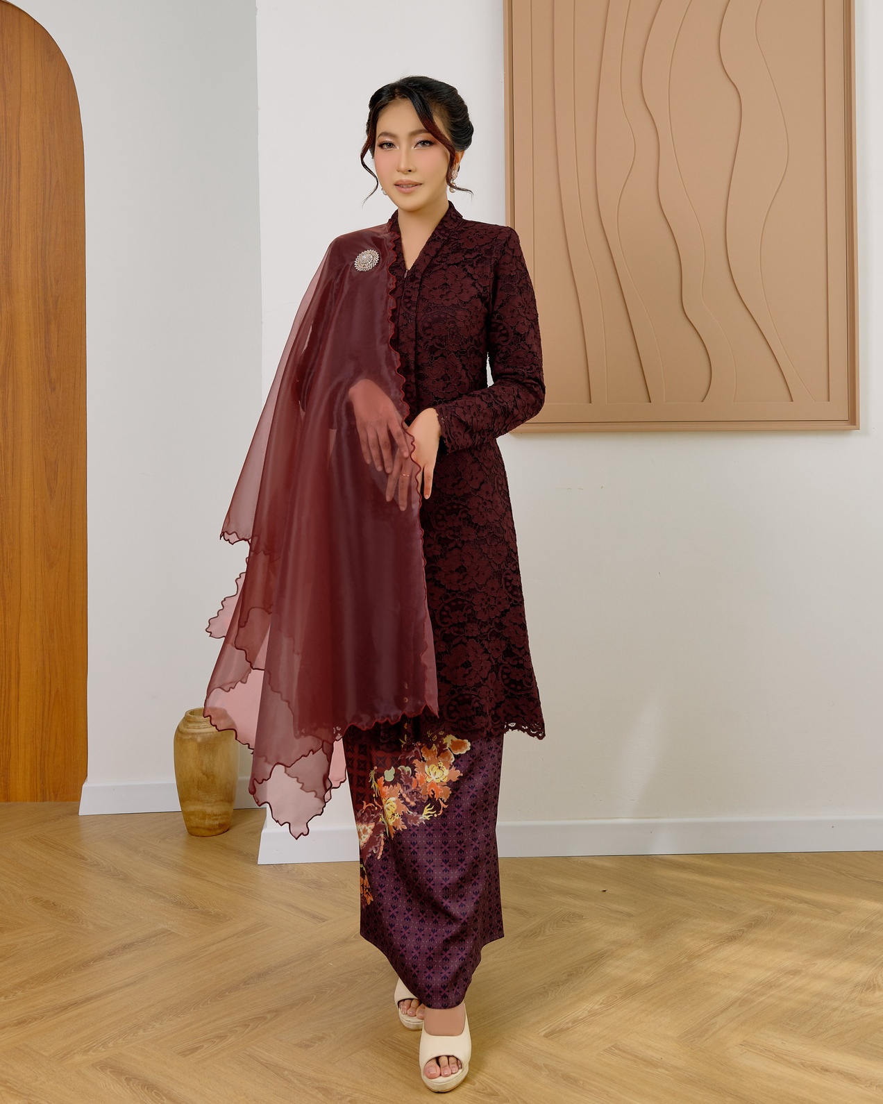 Model : 167 cm , 55kg. Bust 34 & Hip 36. Wearing kebaya Kurung in size XS (Example)